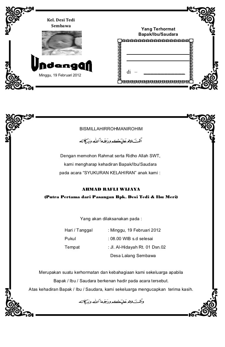 Tulisan Selamatan Kelahiran Anak : Ukuran Kartu Ucapan Aqiqah : Meski tergolong ke dalam surat non resmi atau non formal, surat undangan aqiqah ini tetap memiliki struktur wajib yaitu pembuka, isi.